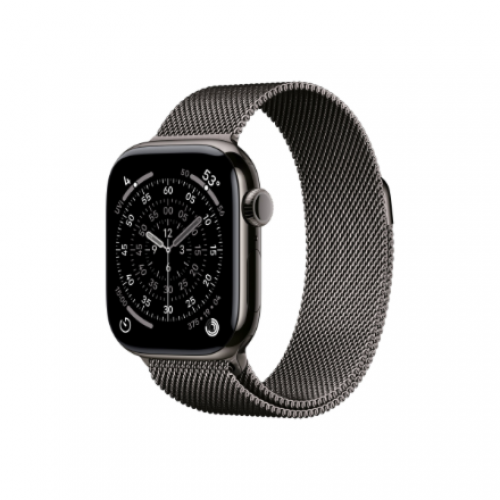 • Apple Watch Series 11 GPS + Cellular 42mm Slate Titanium Case with Slate Milanese Loop